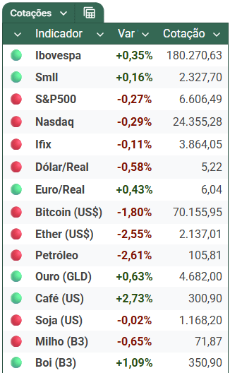 O Ibovespa fechou em alta de +0,35%